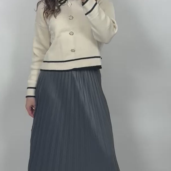 Deze elegante plissérok is een tijdloos item dat moeiteloos stijl en comfort combineert. De soepelvallende stof en fijne plooien creëren een verfijnde, vrouwelijke look die zowel casual als chic te dragen is. Dankzij de elastische tailleband sluit de rok mooi aan en biedt hij optimale bewegingsvrijheid. Perfect te combineren met knitwear, blouses of een blazer voor een stijlvolle outfit.