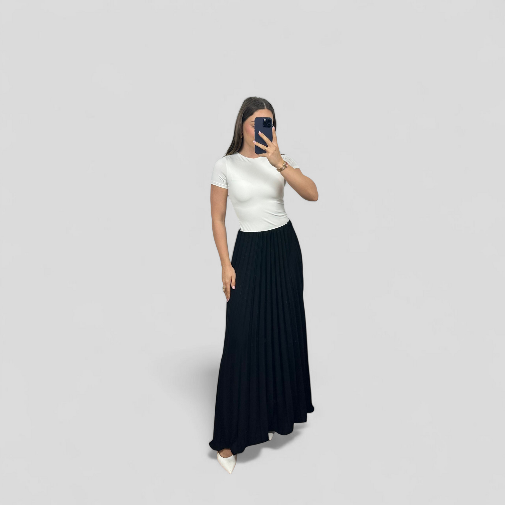- Soepelvallende plissé maxi-rok