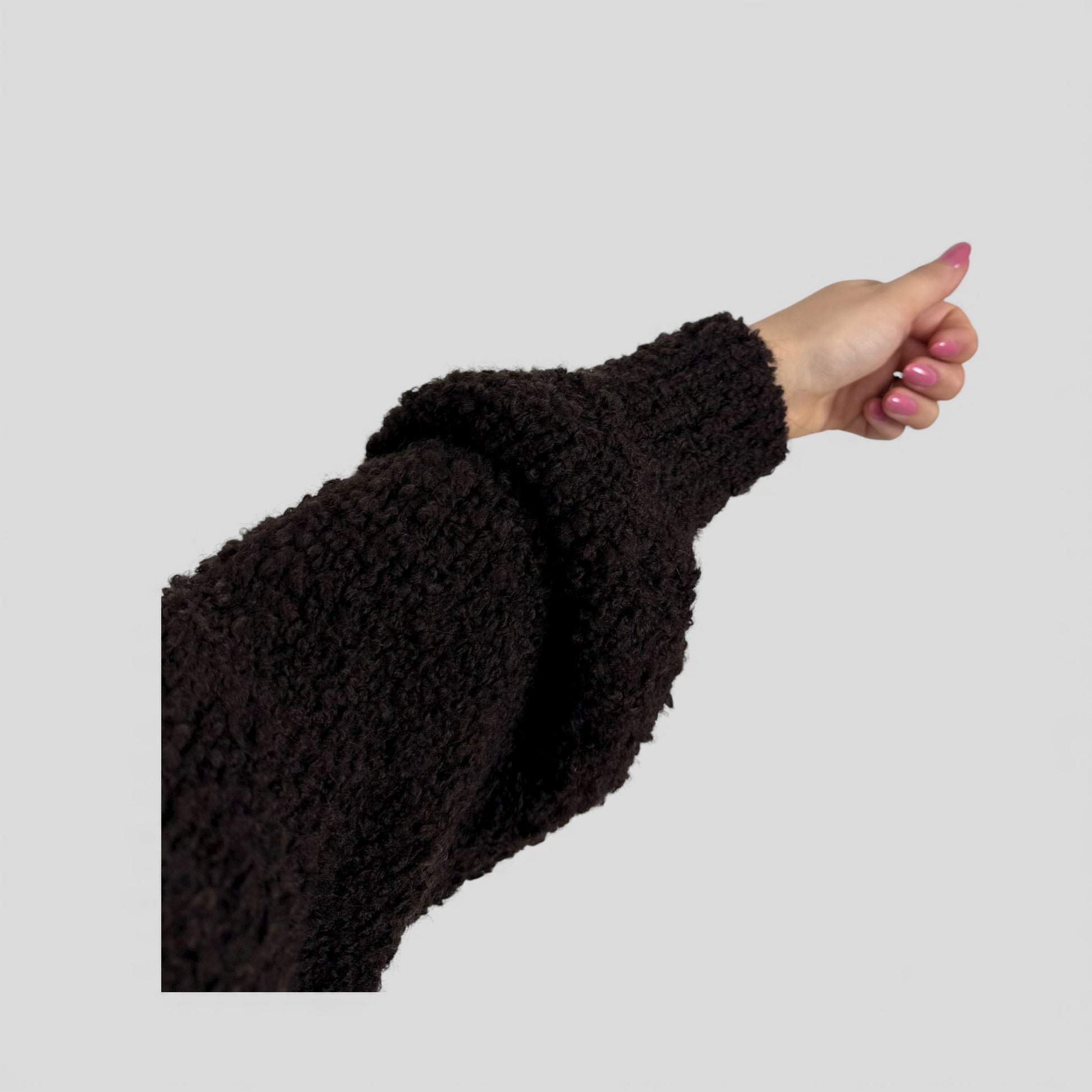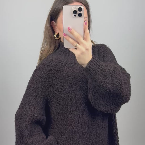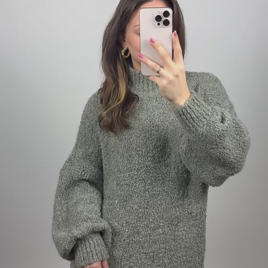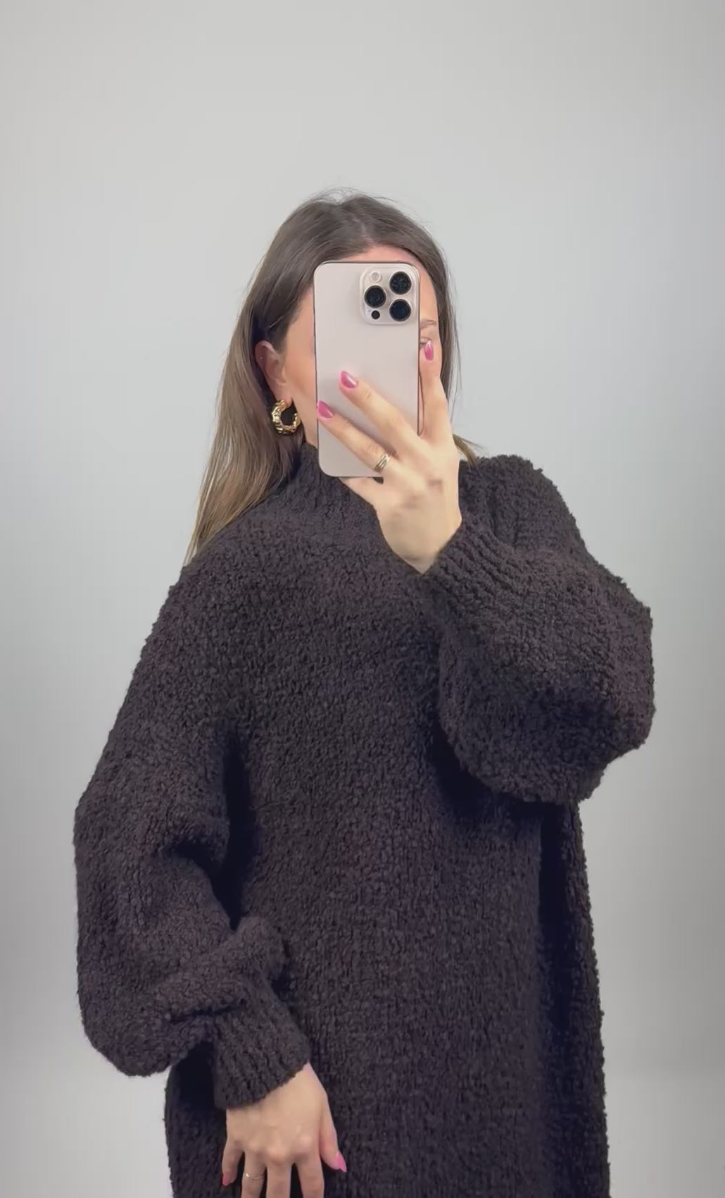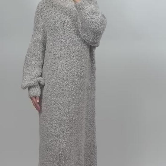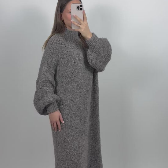 Deze gebreide maxi-jurk straalt warmte en eenvoud uit. De rechte, losse pasvorm valt soepel langs het lichaam en zorgt voor ultiem comfort. Dankzij de hoge hals en lange mouwen is dit een ideale keuze voor koude dagen. Het zachte breisel met subtiele structuur maakt de jurk zowel stijlvol als cosy, perfect voor dagelijks gebruik of een elegante winterse look.
